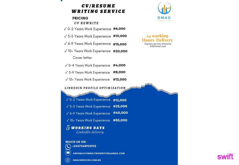 We don't just write CV but we put you at the forefront of the interview list. We also refer you for job if we have anyone available.